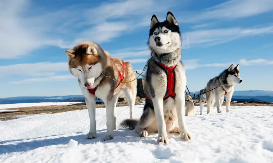 روز آزاد یا گشت آپشنال دهکده هاسکیها، شامل سورتمه سواری و بازی با سگهای هاسکی، سورتمه سواری با گوزن و... (مورمانسک)