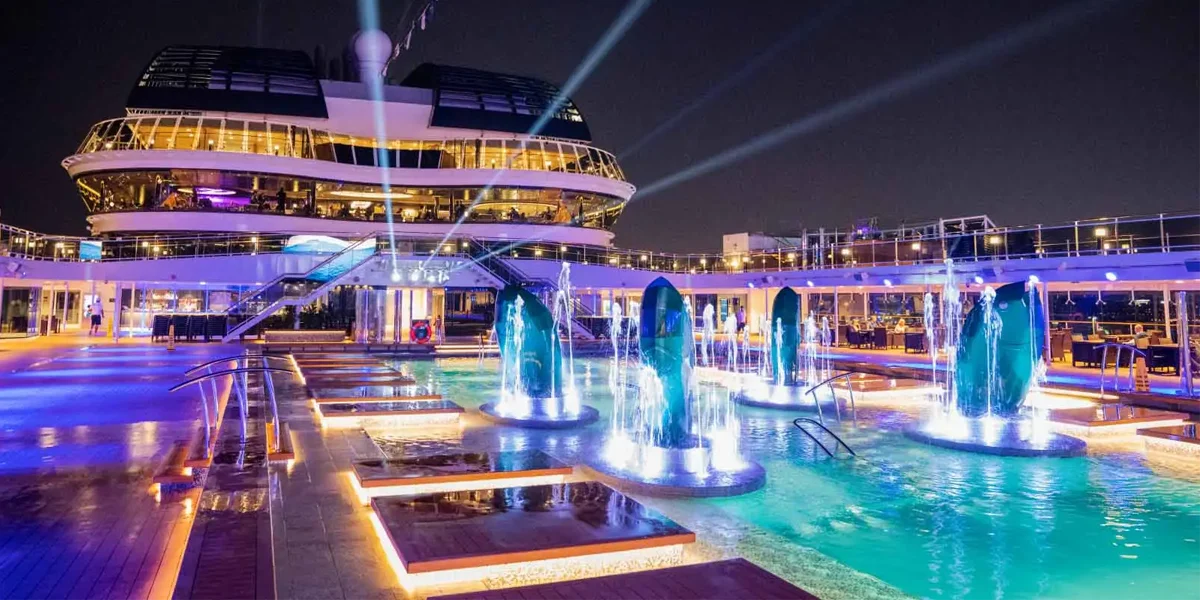کشتی کروز MSC EUROBIA، عبور از مسیرهای آبی خلیج فارس، برنامه‌های تفریحی و فرهنگی شبانه در کشتی، موزه لوور، مسجد باشکوه شیخ زاید، قصر الوطن، جزیره بنی یاس، شنا و تفریحات آبی.