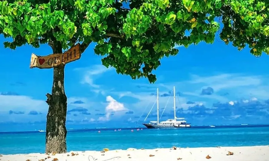 جزیره گولهی (Gulhi): سواحل شنی سفید و تاب معروف داخل دریا